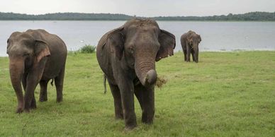 Game Drive in Minneriya National Park. The Minneriya tank contributes to sustain a large herd of Asian Elephants. Elephants gathered here is numbering around 150-200.